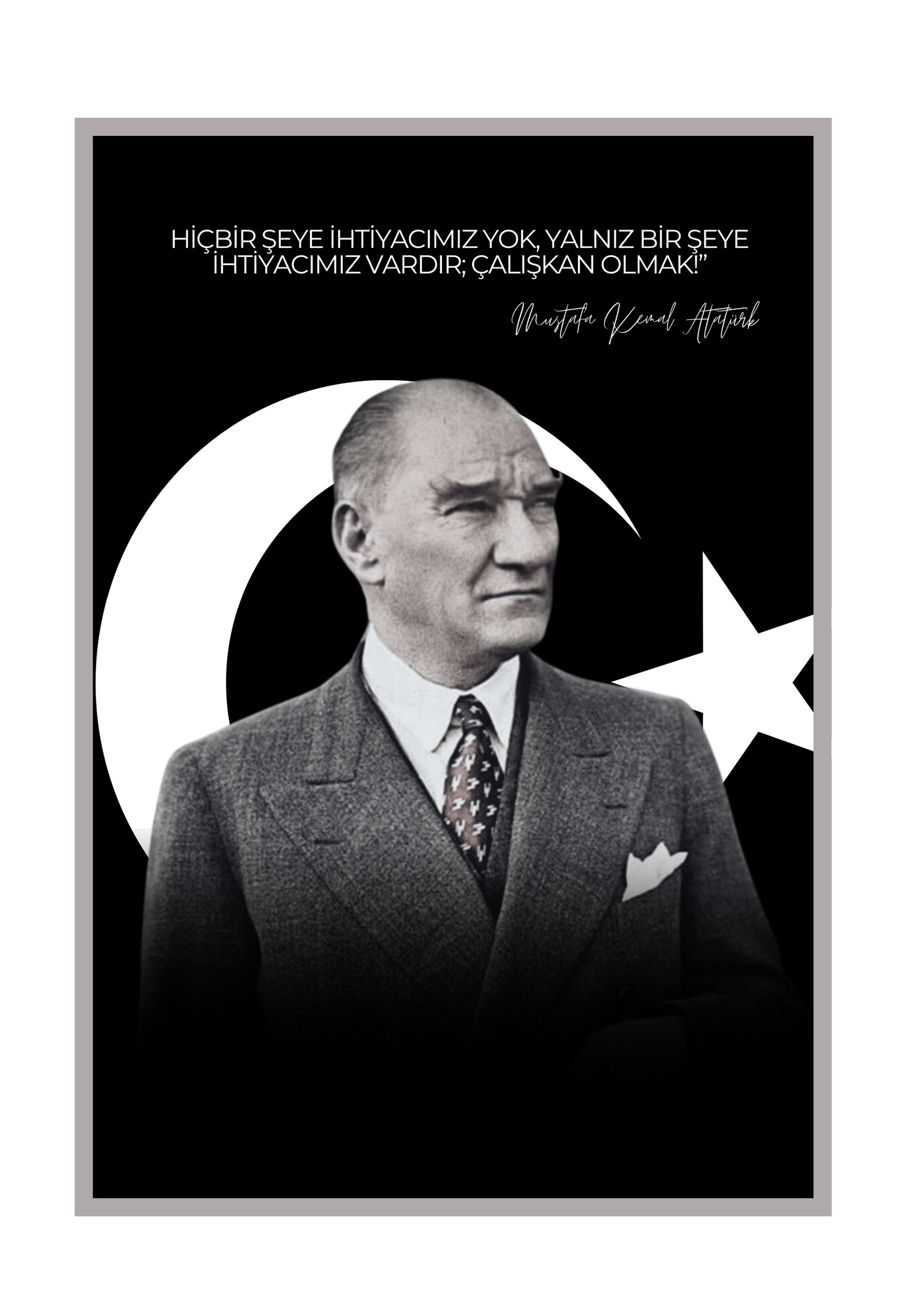Gökyüzüne bakan Atatürk tasviri, umut ve vizyonun simgesi olarak bu özel tabloya işlenmiştir.