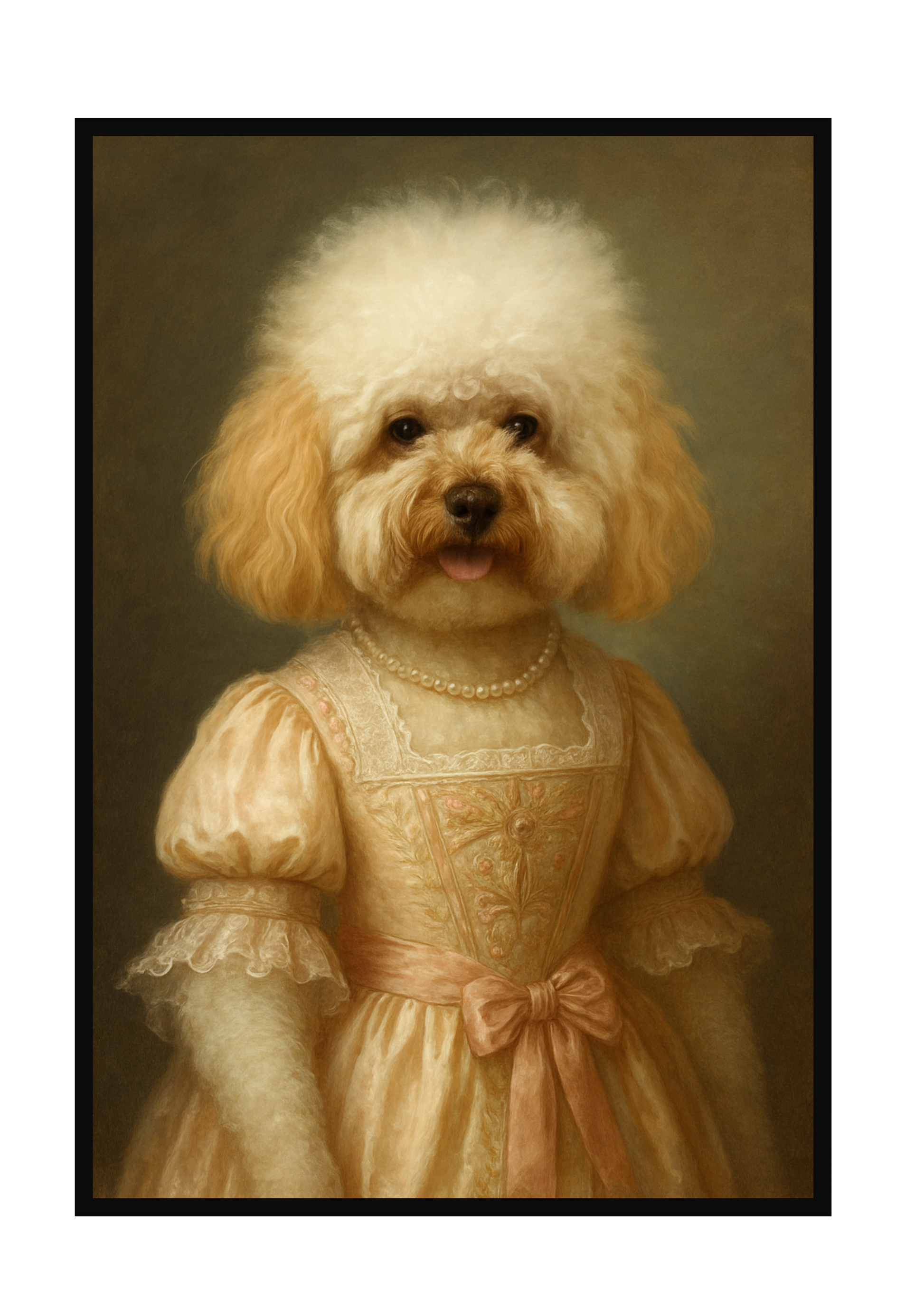 Sevimli kediniz ya da köpeğiniz, göz alıcı bir gelinlik içinde hayat buluyor. Fotoğrafını bize gönderin, biz de onu zarif danteller, inci detaylar ve ışıl ışıl bir görünümle tabloya taşıyalım.